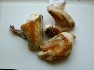 2. Heat the olive oil in a frying pan and brown the chicken pieces on all sides until brown. You’ll probably have to do this in stages since it won’t all fit in one frying pan.