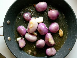 4. Now brown the shallots and garlic in the same frying pan for about five minutes.