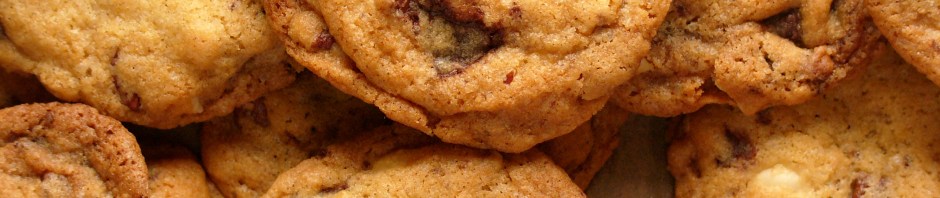 I baked these on Sunday, when a bug had confined me to the house for 24 hours and I needed something to distract me. And they were/are perfect. Fast as anything to make, a brilliant crunch-then-soft texture and they even tasted more American than my usual efforts (and no, I have absolutely no idea what I mean by that…!). I followed the recipe, in that I used two types of chocolate, and peanuts and pecans but I’m sure it will lend itself to all sorts of substitutions. Apparently they last up to a week in an airtight tin. I defy any cookie-lover not to love these. Now, who’s for coffee?