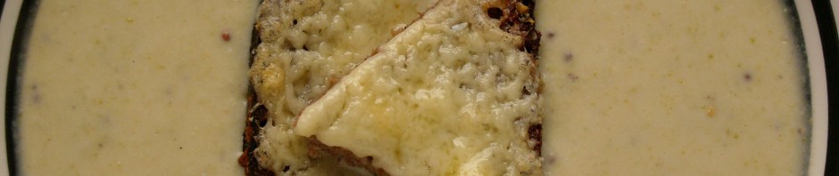 8. When ready to serve, toast the bread, cover with the remaining grated cheese and grill until the cheese is melted and bubbling. Cut the cheese toast into triangles, put a couple on top of each bowl of soup and serve.