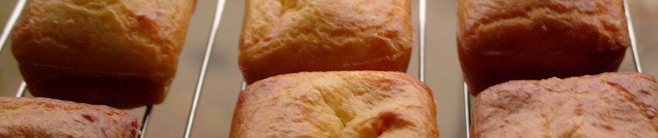 Technically, this recipe makes 12 but I made them in US-bought mini-loaf tins which, since I only ended up with eight, might be somewhat larger than the French standard size…If you don’t have mini-loaf tins, mini-muffin tins might work, though I have not tried them. They come out quite soft and their flavour is delicate, rather than full-on, so they make an ideal Christmas party snack, or they’d be great, once we get outdoors again, for a picnic.