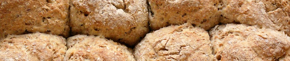 Third, I wanted a mini-version, both because it’s quicker to bake but also, I think, makes better sandwiches and, for someone who lives alone and has very little freezer space, it is easier to store. For that, I turned to Martha Stewart, whose technique of dividing the dough up into balls then nestling them together on a baking sheet (see picture, below) creates perfect, individual soda breads.