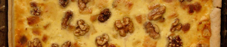 5. Cover the pastry with the cheese and walnuts, tip over the eggs and cream then bake until crisp and bubbling (about 20 minutes).