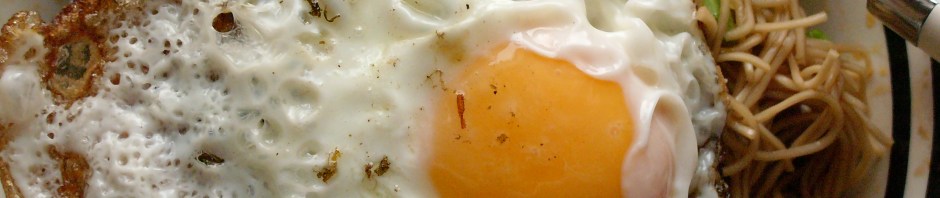 4. Heat a little oil in a frying pan, fry an egg per person, add to the bowls of noodles with a spoonful of olive vegetables and serve.