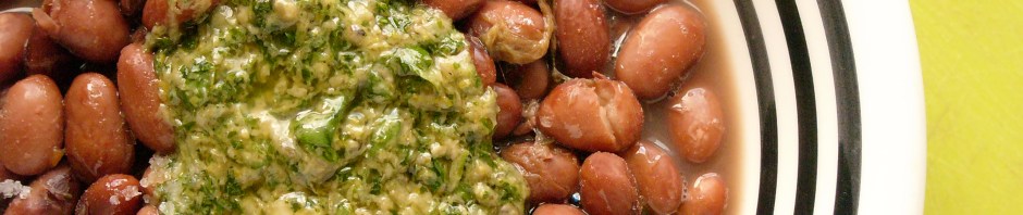 Whichever version you go for, try them with this chilli oil which is, again, very simple, and like adult Ready Brek. You can also use pesto or, as per the photo, a mash-up of whatever herbs and oil you have to hand. I am off to soak some beans myself now, and put on another jumper…