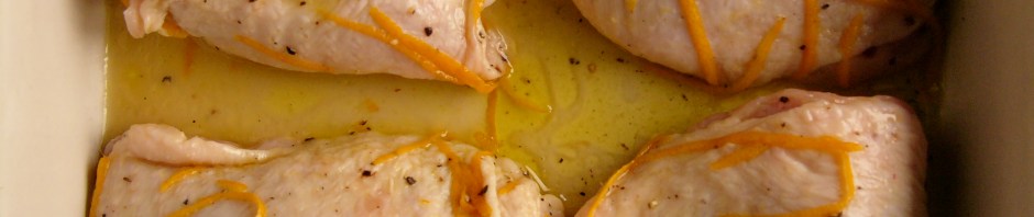 Chicken thighs with citrus and olives (adapted from Two Kitchens)